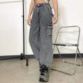 アクセントのデニムカーゴパンツ。
