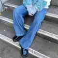 デニムワイドパンツ。