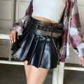 合成皮革プリーツミニスカート。