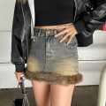 裾ファー切り替えデニムスカート。